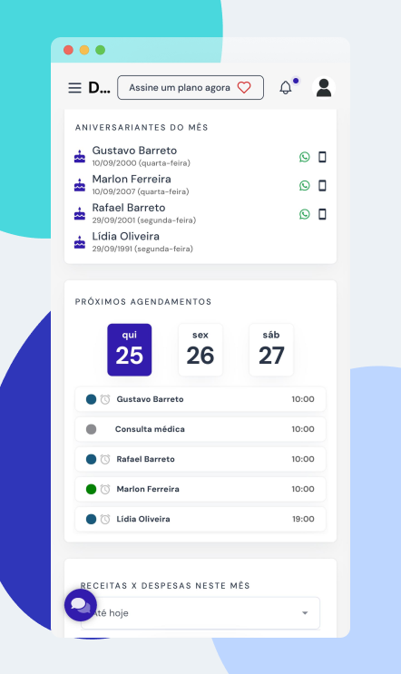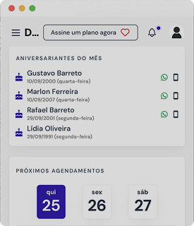 Se você usa WhatsApp, consegue usar o Agenday. Interface simples, sem menus complicados. Oferecemos treinamento individual gratuito e suporte sempre disponível